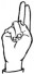 На ћирилици написано ДУЊА МИСКИН састоји се из 10 слова [?]. Исписано ћириличном једноручном азбуком за глувонеме: